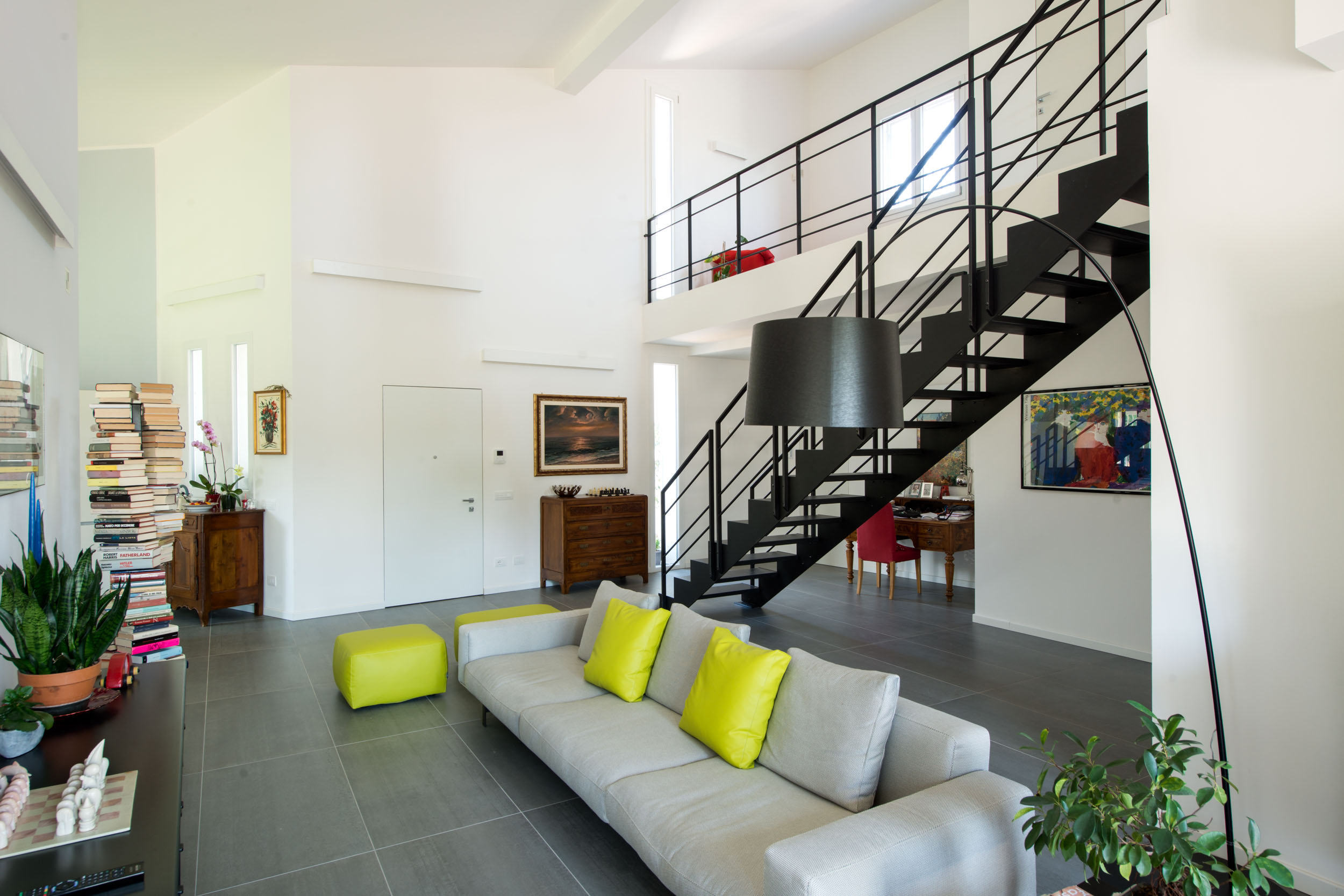 La villa è abbracciata dal verde pertinenziale circostante e ricerca nella tradizione le sue caratteristiche dominanti: la modernità diviene reinterpretazione degli elementi appartenenti alla tradizione.