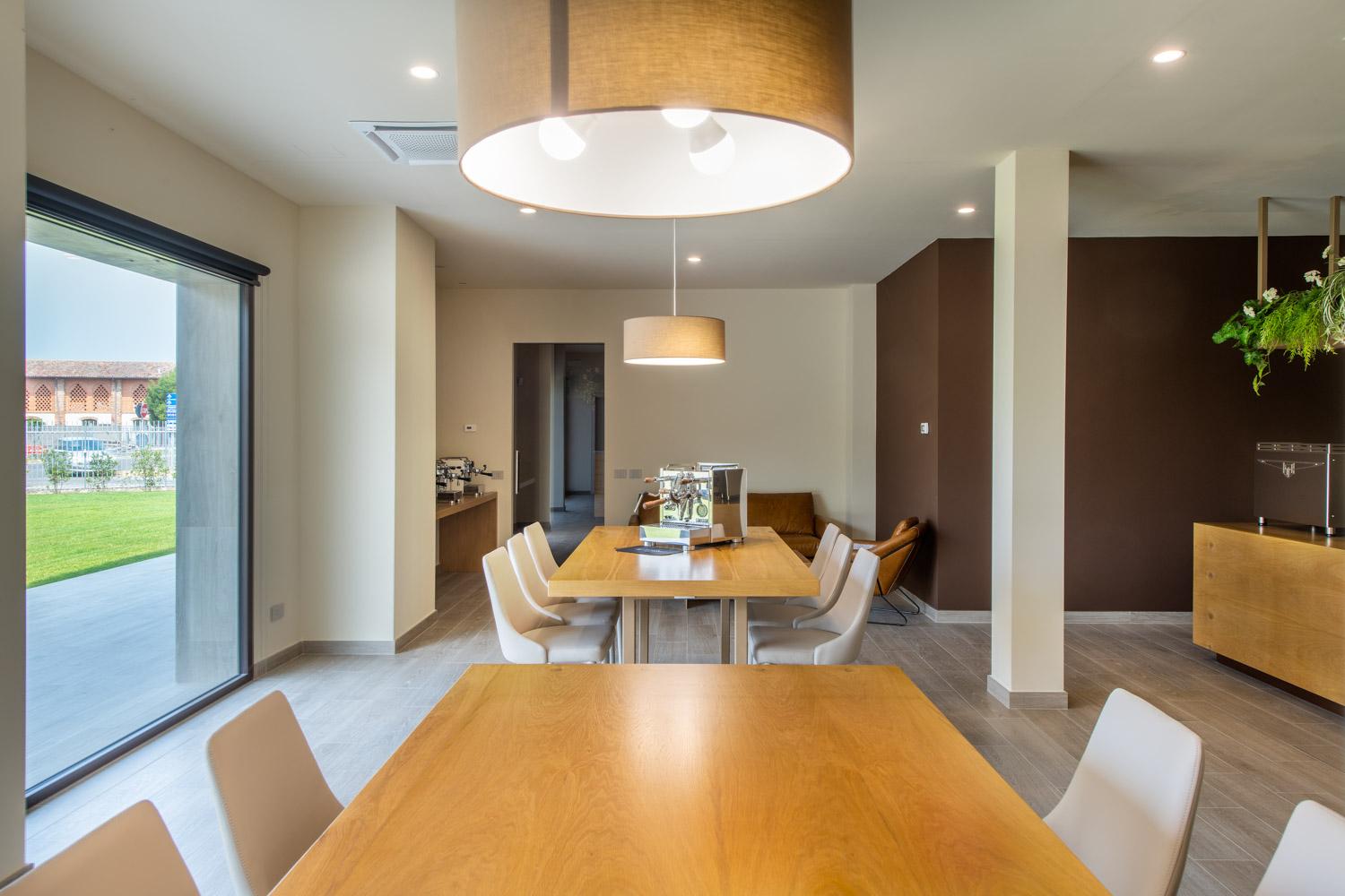 L’edifico di tipo produttivo ospita la ditta “Torre” che produce macchine per caffè e che necessitava di una sede che rispecchiasse l’eleganza e la modernità del marchio.