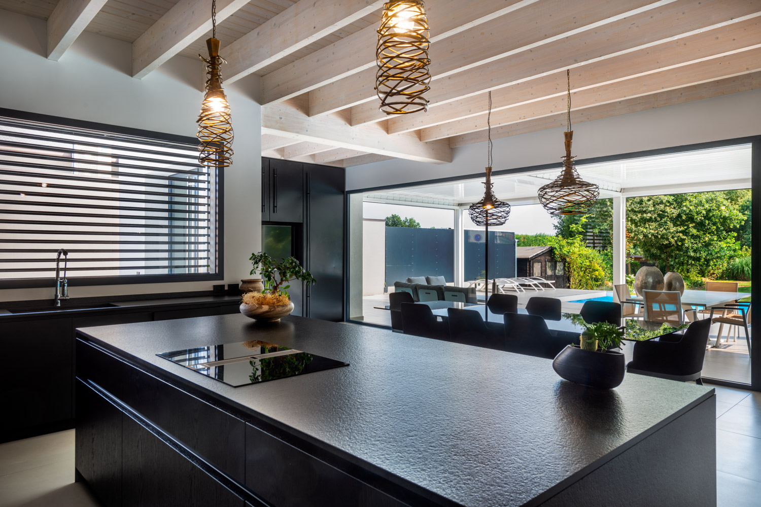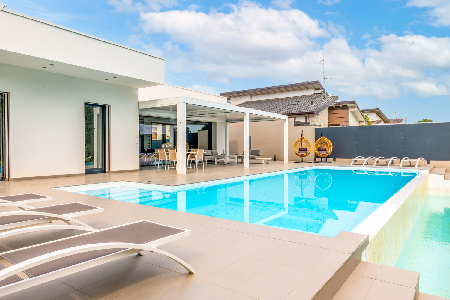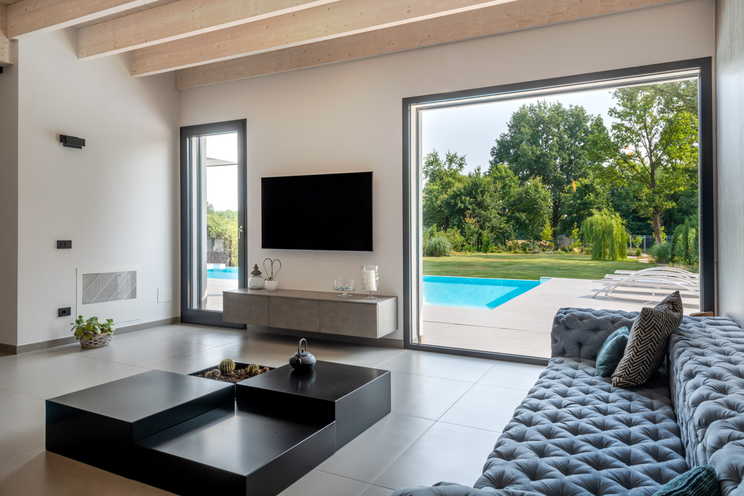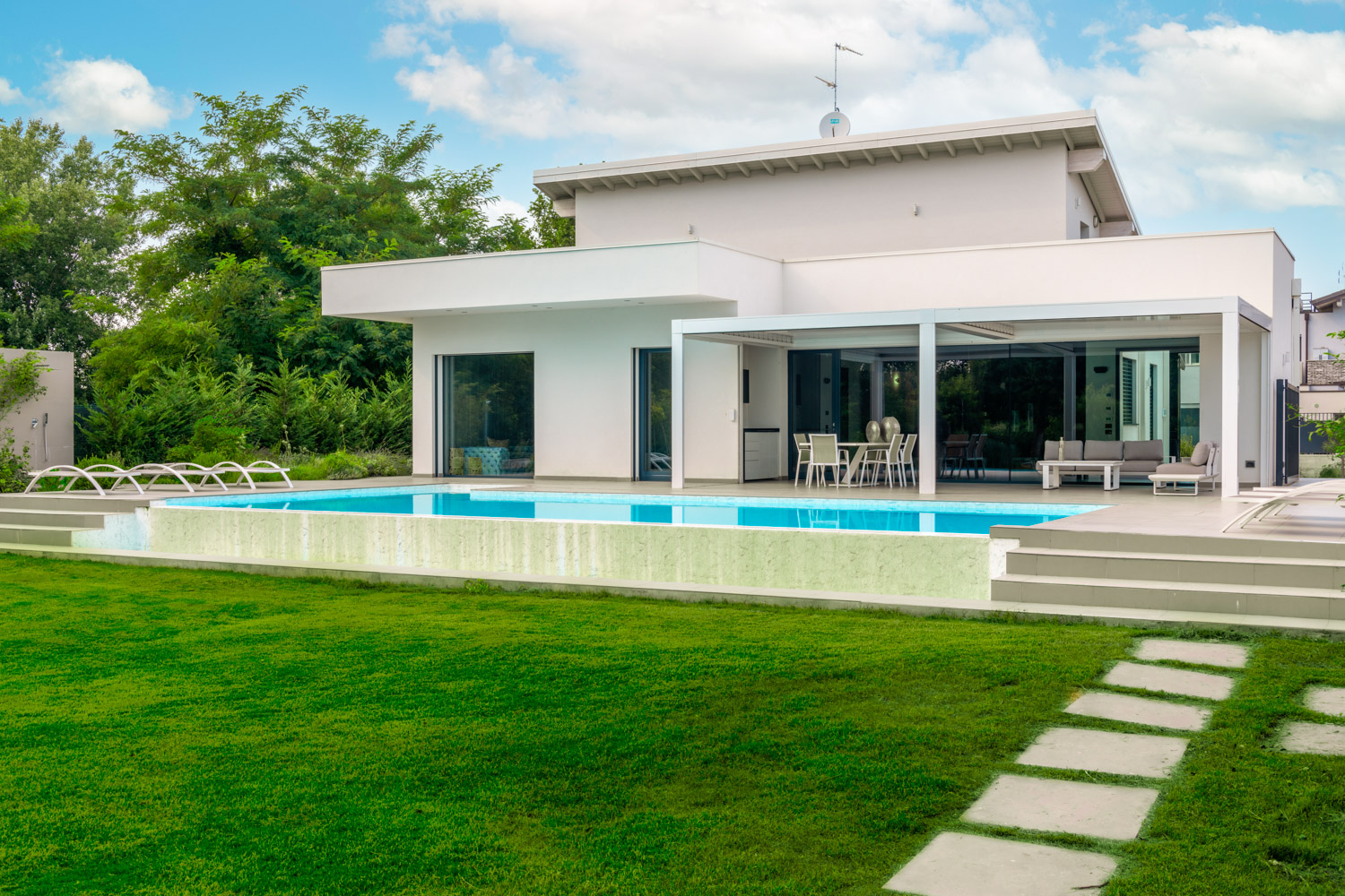 Il progetto per una nuova villa di ampie dimensioni su un lotto di 3000 mq parte dall’idea di voler sfruttare la sua posizione di assoluta privacy fondendo gli esterni con gli ambienti interni attraverso ampie vetrate.