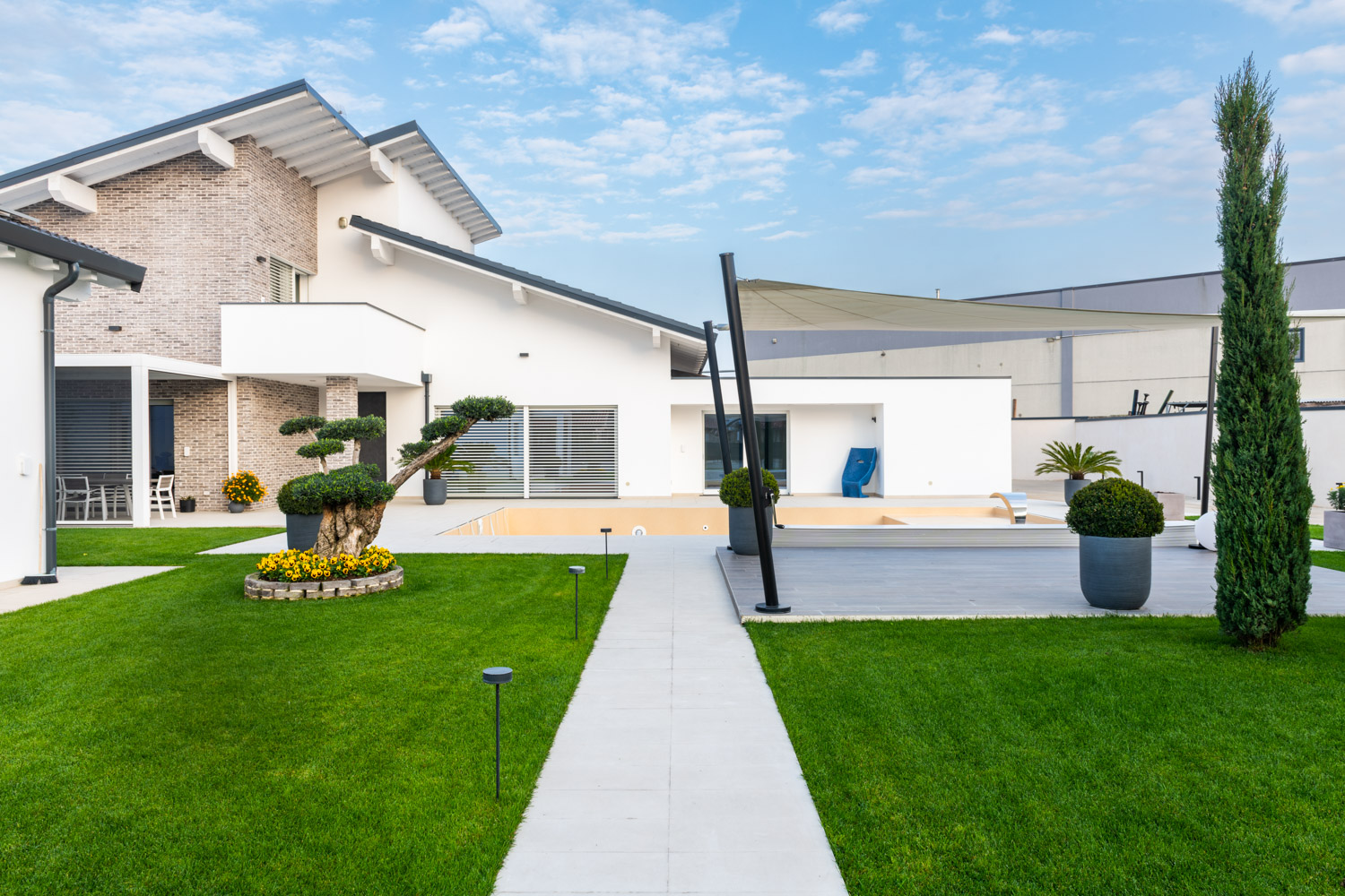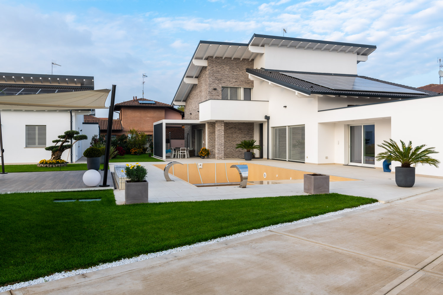 La nuova costruzione parte dall’idea di vuole realizzare due ville giacenti sullo stesso lotto per un nucleo familiare composto da due famiglie con giardino in comune.